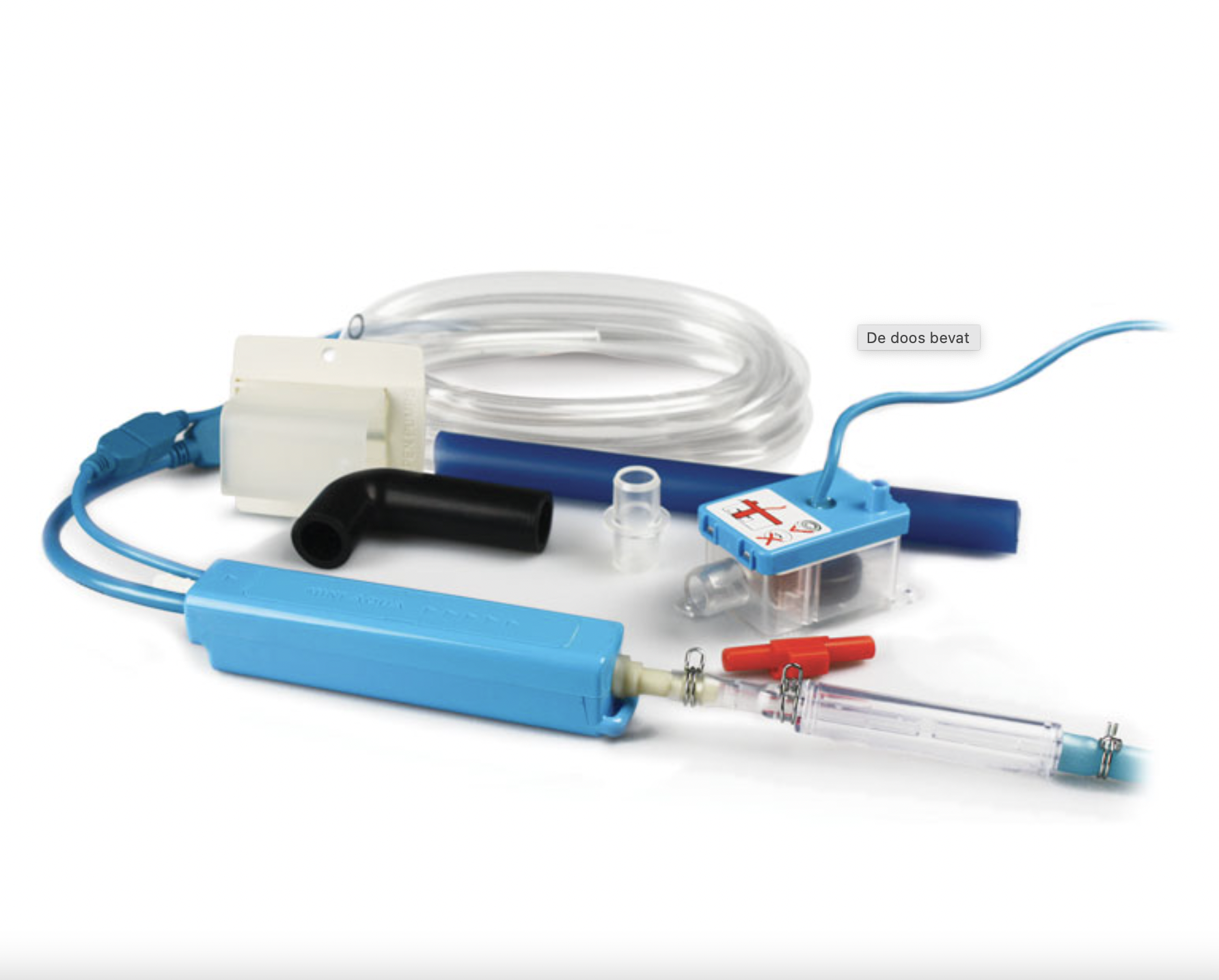 De pomp loopt langzaam vol met condenswater, wanneer deze een punt heeft bereikt, zal de pomp aanslaan en het condenswater gaan afvoeren. Naast deze Aspen Pomp is er ook een uitvoering inclusief goot.